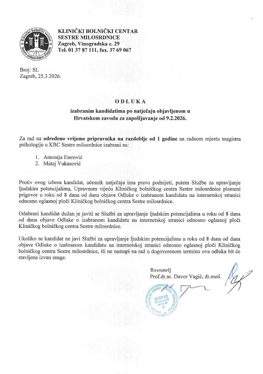 Odluka – mag. psihologije – pripravnik – obj. 2.4.2026.
